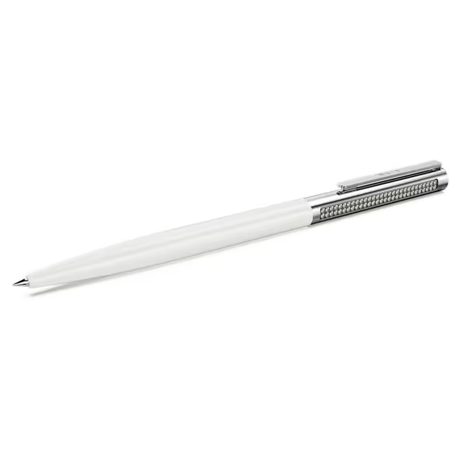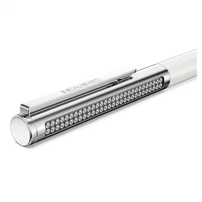 Αυτό το εκλεπτυσμένο στυλό είναι εμπνευσμένο από την οικογένεια κοσμημάτων Matrix Tennis και διαθέτει λεπτό σώμα με απαλή μεταλλική λάμψη σε λευκό χρώμα και ένθετο από κρύσταλλα σε Ταινία Chaton Crystaltex σε διαφανή τόνο. Είναι κομψό και διακριτικό, αλλά εξακολουθεί να εκπέμπει την αδιαμφισβήτητη λάμψη της Swarovski. Ανταλλακτικά για μπλε και μαύρο μελάνι είναι διαθέσιμα προς αγορά στα καταστήματα Swarovski.