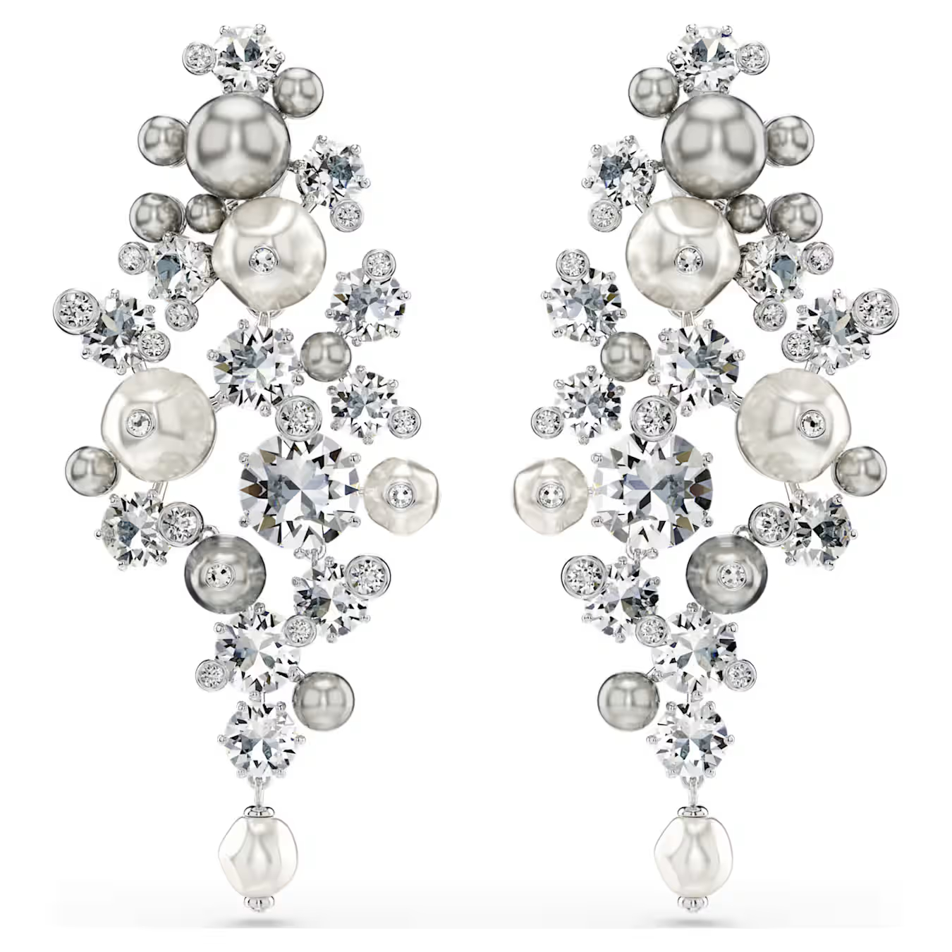 Δημιουργήστε την τέλεια κομψή εμφάνιση με αυτά τα εντυπωσιακά σκουλαρίκια κλιπ. Κάθε κομμάτι με επιμετάλλωση ροδίου διαθέτει περίπλοκο επίπεδο savoir-faire και περιλαμβάνει διαφανή κρύσταλλα και λευκά και γκρι Swarovski Crystal Pearls σε διάφορα μεγέθη, τα οποία συνδυάζονται για να δημιουργήσουν μια πραγματικά εκλεπτυσμένη εμφάνιση. Για απόλυτη ευελιξία, το κάτω μέρος είναι αποσπώμενο, προσφέροντας τη δυνατότητα τα σκουλαρίκια να φοριούνται ως chandelier ή ως μικρότερα κλιπ. Συνδυάστε τα με το ασορτί τσόκερ ή την καρφίτσα Constella για να κλέψετε πραγματικά την παράσταση.