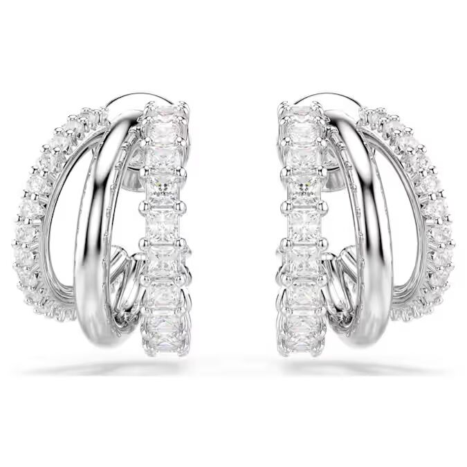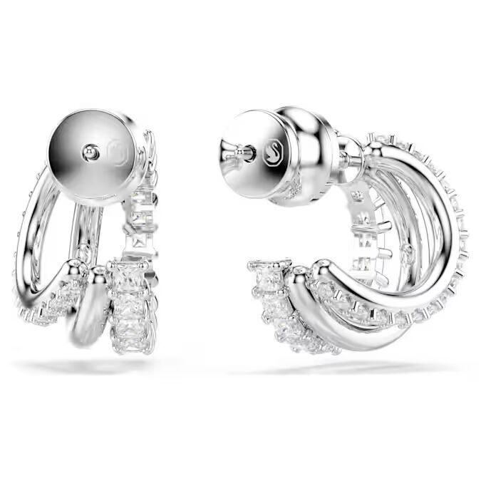 Αυτά τα περίτεχνα φιλοτεχνημένα σκουλαρίκια Hyperbola χαρακτηρίζονται από μοναδική ομορφιά. Σε κάθε πλευρά, οι τρεις μίνι κρίκοι διαθέτουν επιμετάλλωση ροδίου, με διακόσμηση από Swarovski Zirconia στρογγυλής και τετράγωνης κοπής σε οδοντωτό δέσιμο. Συνδυάστε τα με ένα ασορτί άκαμπτο βραχιόλι ή μενταγιόν για στυλ που κλέβει την παράσταση.