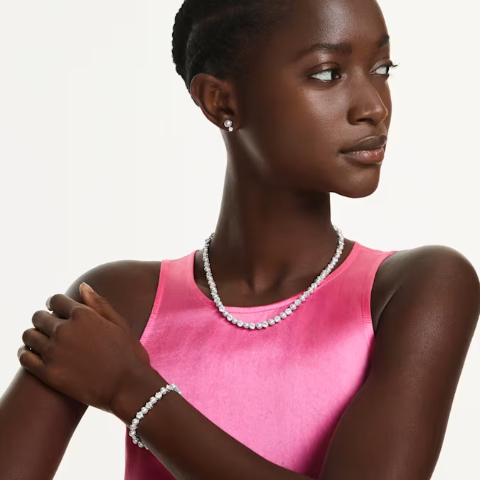 Συνδυάζοντας ένα κολιέ, ένα βραχιόλι και ένα ντελικάτο ζευγάρι σκουλαρίκια με καρφάκι, αυτό το σετ κοσμημάτων Matrix θα προσδώσει φινέτσα στο στυλ σας. Κάθε κομμάτι με επιμετάλλωση ροδίου διαθέτει μια πολυτελή ισορροπία από διαφανή Swarovski Zirconia και λευκά Swarovski Crystal Pearls, προσφέροντας μια μοντέρνα απόδοση του κλασικού σχεδίου Tennis. Φορέστε αυτό το σετ εσείς ή χαρίστε το σε κάποιο αγαπημένο σας πρόσωπο ως ένα λαμπερό δώρο.