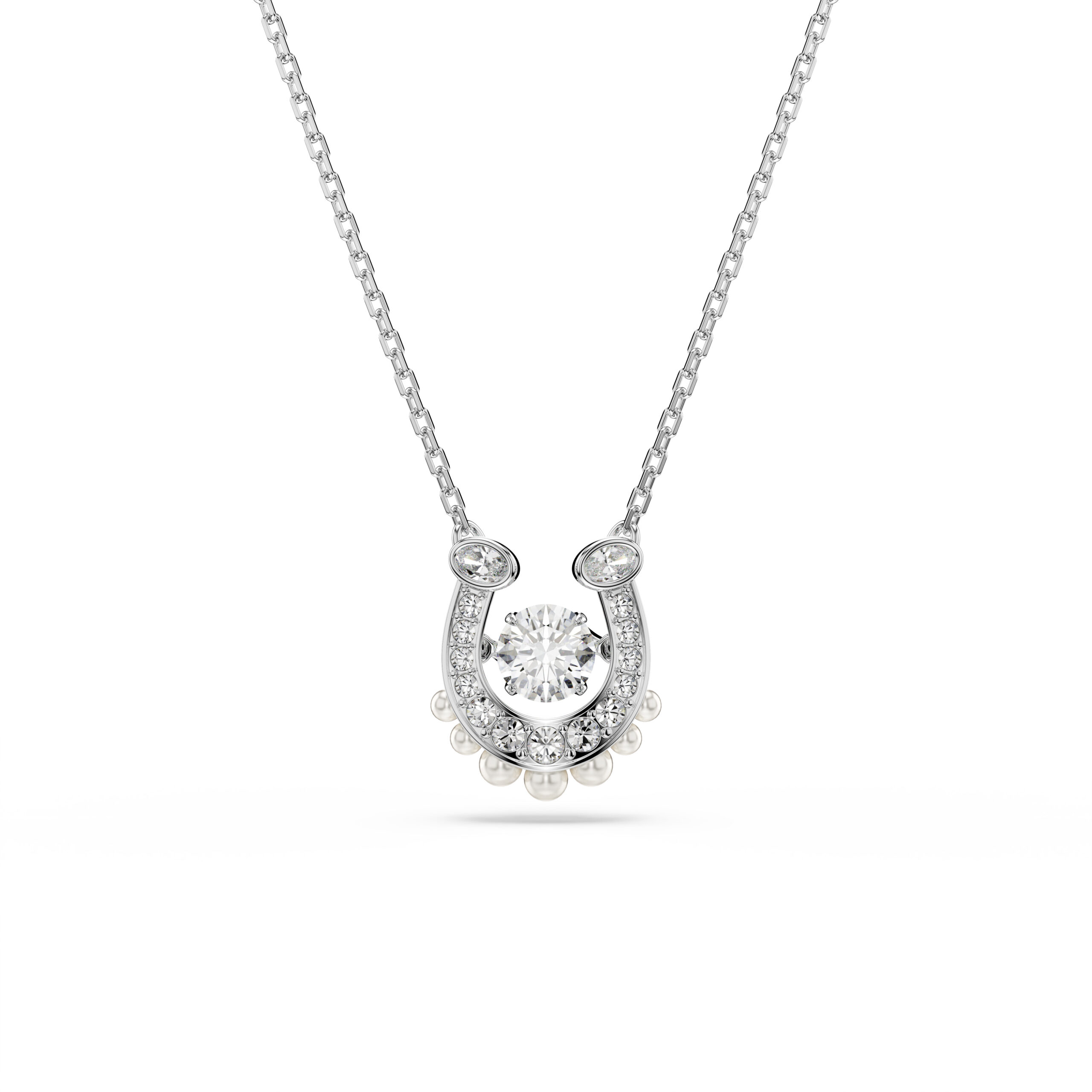Μεγιστοποιήστε τη λάμψη σας με αυτό το γεμάτο νόημα μενταγιόν σε σχήμα πετάλου. Με μοτίβο με επιμετάλλωση ροδίου διακοσμημένο με διαφανή κρύσταλλα και μικροσκοπικά Swarovski Crystal Pearls, το κέντρο του σχεδίου διαθέτει μία πολυεδρική κινούμενη πέτρα, που δημιουργεί ένα θαυμαστό παιχνίδισμα με το φως. Φορέστε αυτό το μενταγιόν εσείς ή χαρίστε το σε κάποιο ξεχωριστό πρόσωπο ως σύμβολο τύχης και επιτυχίας.