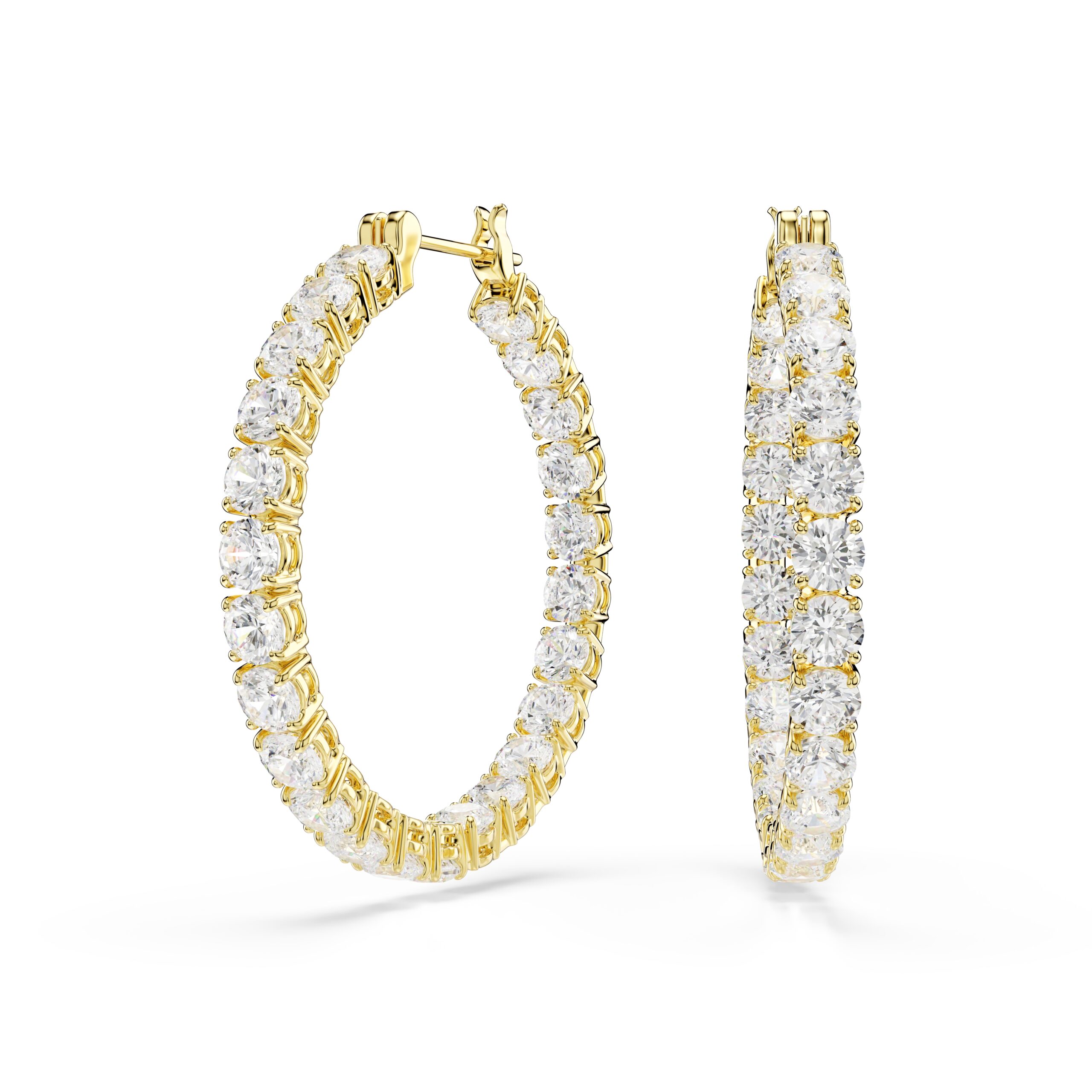 Αυτά τα άψογα σχηματισμένα σκουλαρίκια κρίκοι Matrix χαρακτηρίζονται από τη διαχρονική εμφάνιση των κρυστάλλων στρογγυλής κοπής και του μετάλλου σε χρυσό τόνο. Πρόκειται για έναν υπέροχο συνδυασμό που είναι απαραίτητος σε κάθε κοσμηματοθήκη. Επιλέξτε αυτούς τους κρίκους όταν απαιτούνται κύκλοι απόλυτης λάμψης.